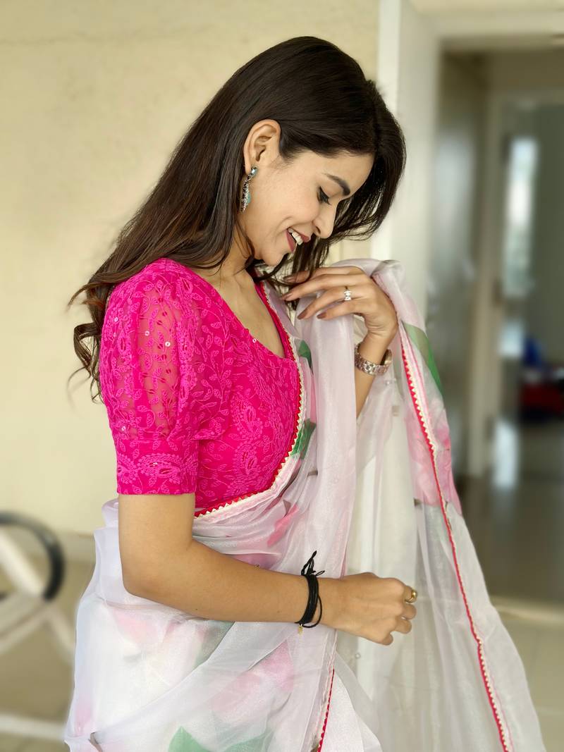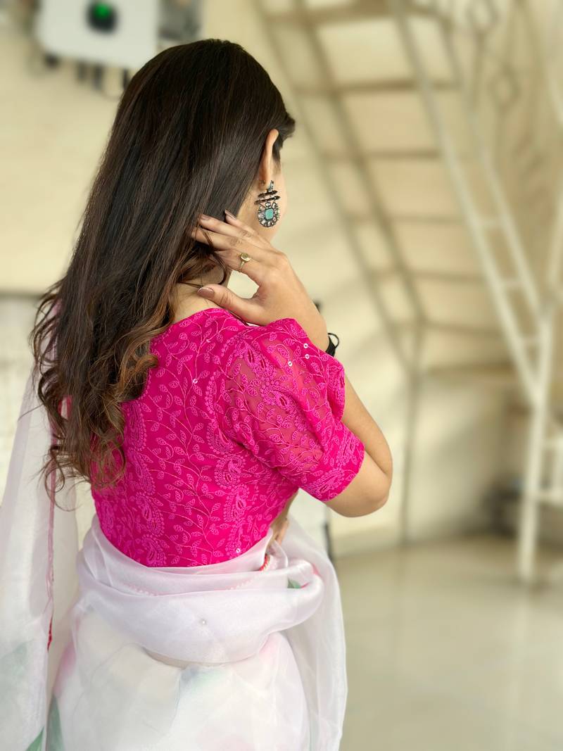 • | Blouse | : | Color- Rani / Fabric- Georgette |