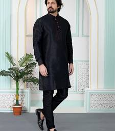 Black art silk straight kurta for men