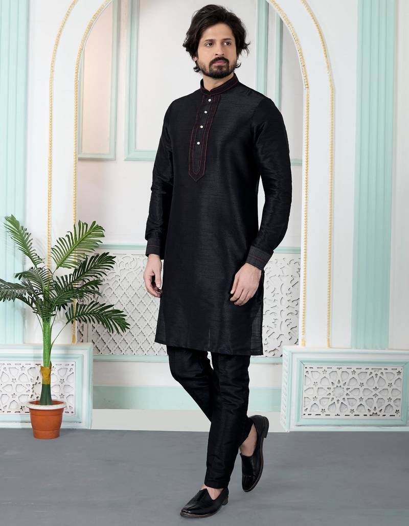 | Product Name | Black Art Silk Straight Kurta For Men | |
