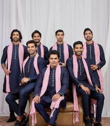 Blue art silk kurta for men