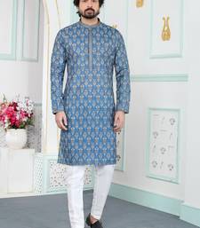 Blue art silk straight kurta for men