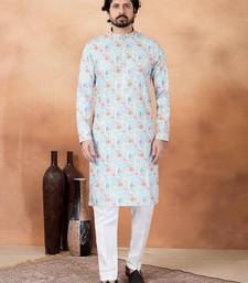 Blue art silk straight kurta for men