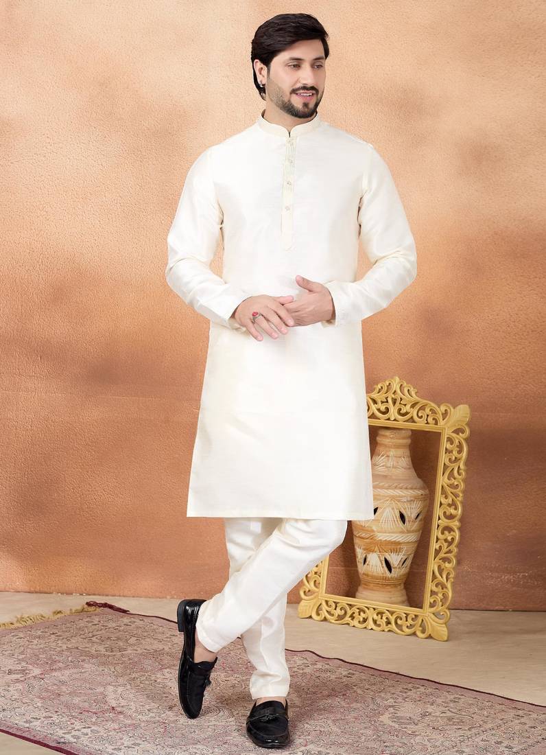 Product Name Cream Art Silk Straight Kurta For Men