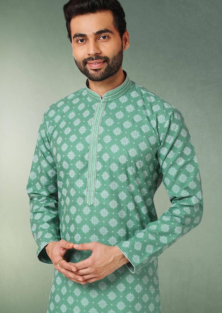| Product Name | Green Printed Cotton Fabric Straight Kurta For Men | |