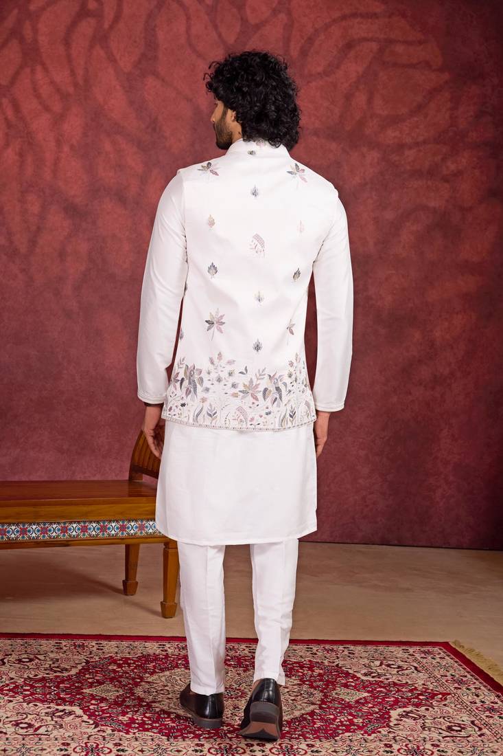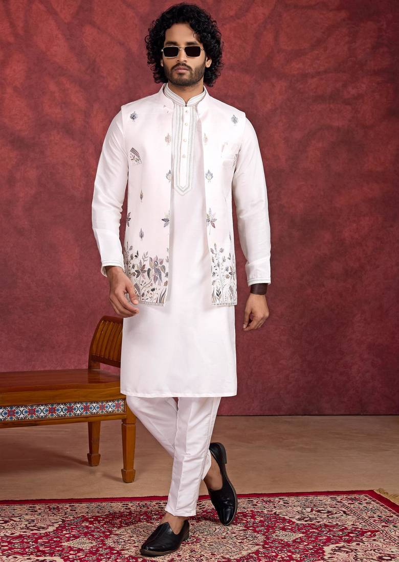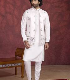 | Product Name | Off White Art Silk 3 Peice Kurta Jacket Set For Men | |