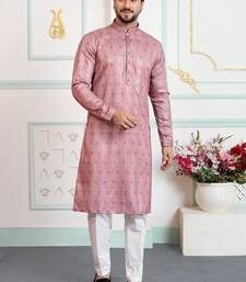 Pink art silk straight kurta for men