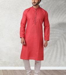 Red printed cotton fabric straight kurta for men