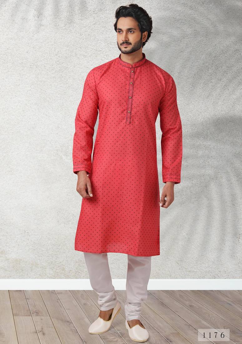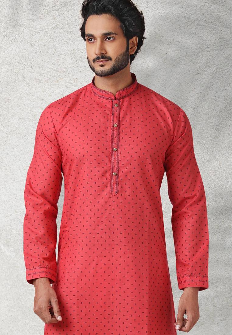 | Product Name | Red Printed Cotton Fabric Straight Kurta For Men | |