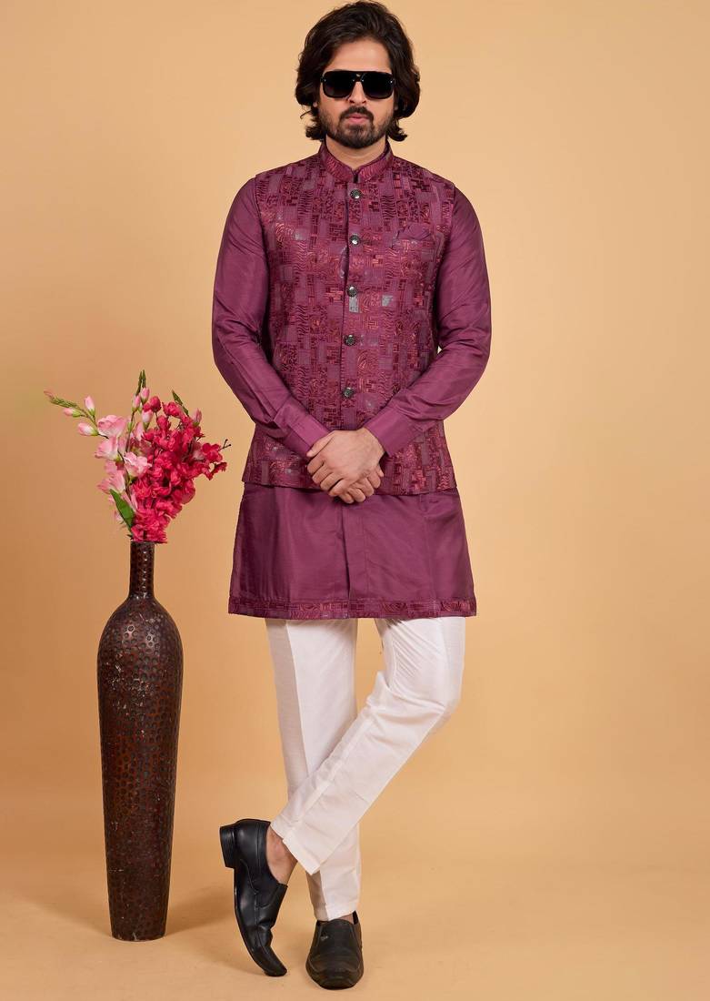 | Product Name | Wine Art Silk 3 Piece Kurta Jacket Set For Men | |