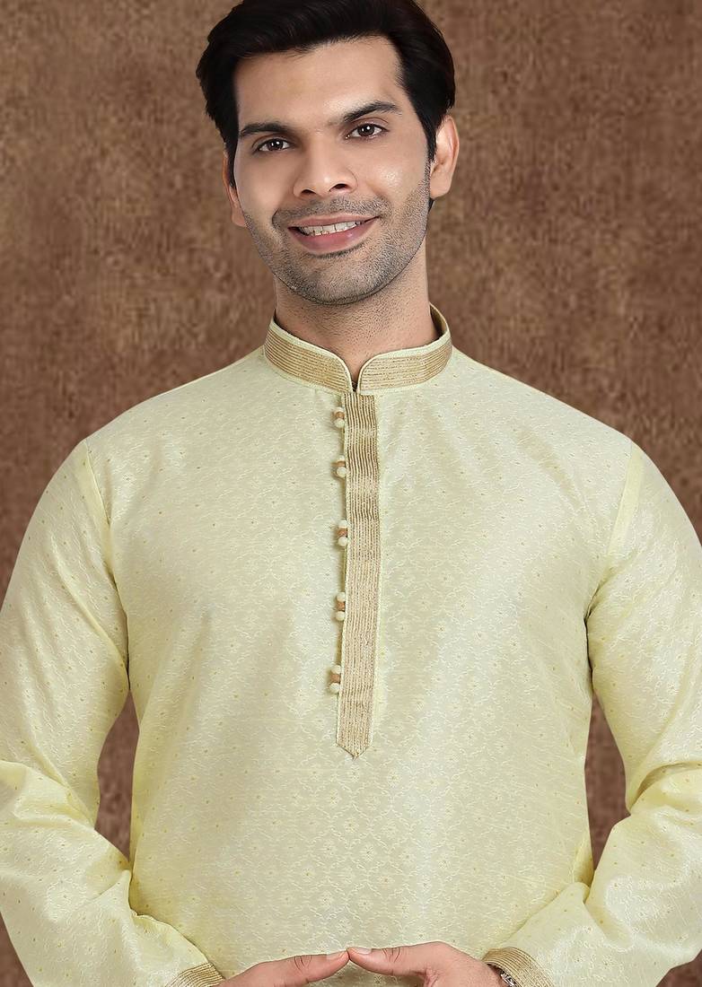 | Product Name | Yellow Jacqaurd Silk Brocade Straight Kurta For Men | |