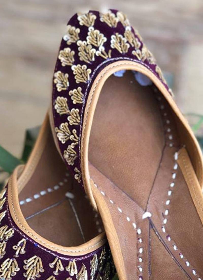 | Product Description | Purple Color Heavy Work Jutti.Its A Beautiful Wedding Wear Girls Footwear.Hand Work Indian Rajasthani Mojari. |