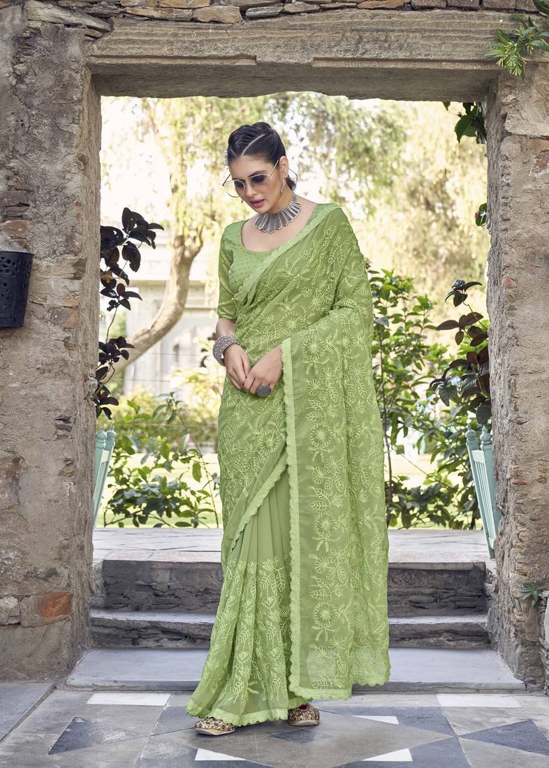 | Product Description | Feel Elegant With Sonu Tex Chikankari Saree. The Alluring Chiffon Saree Weaved With White Cotton Thread. The Fabric Is Lightweight And Soft, Best For Any Season Use. |