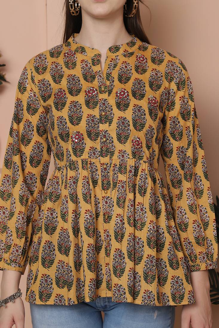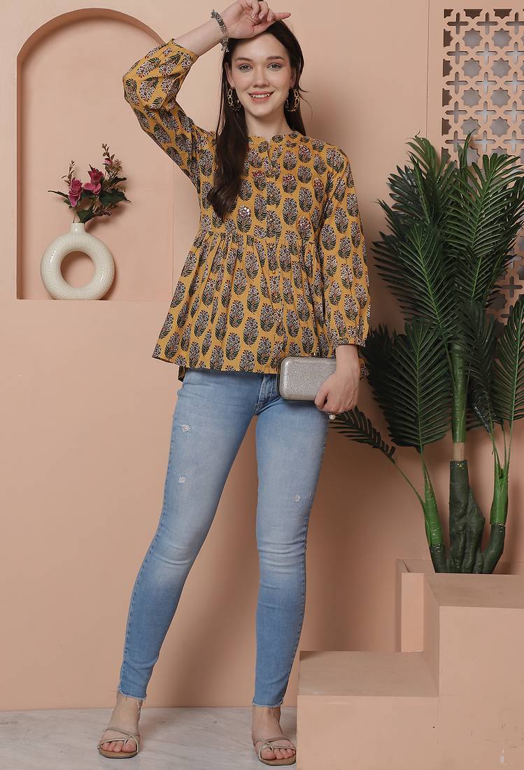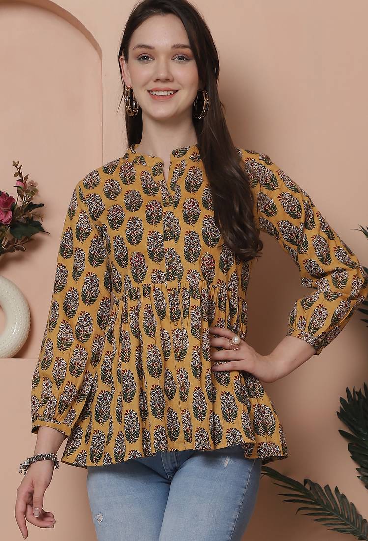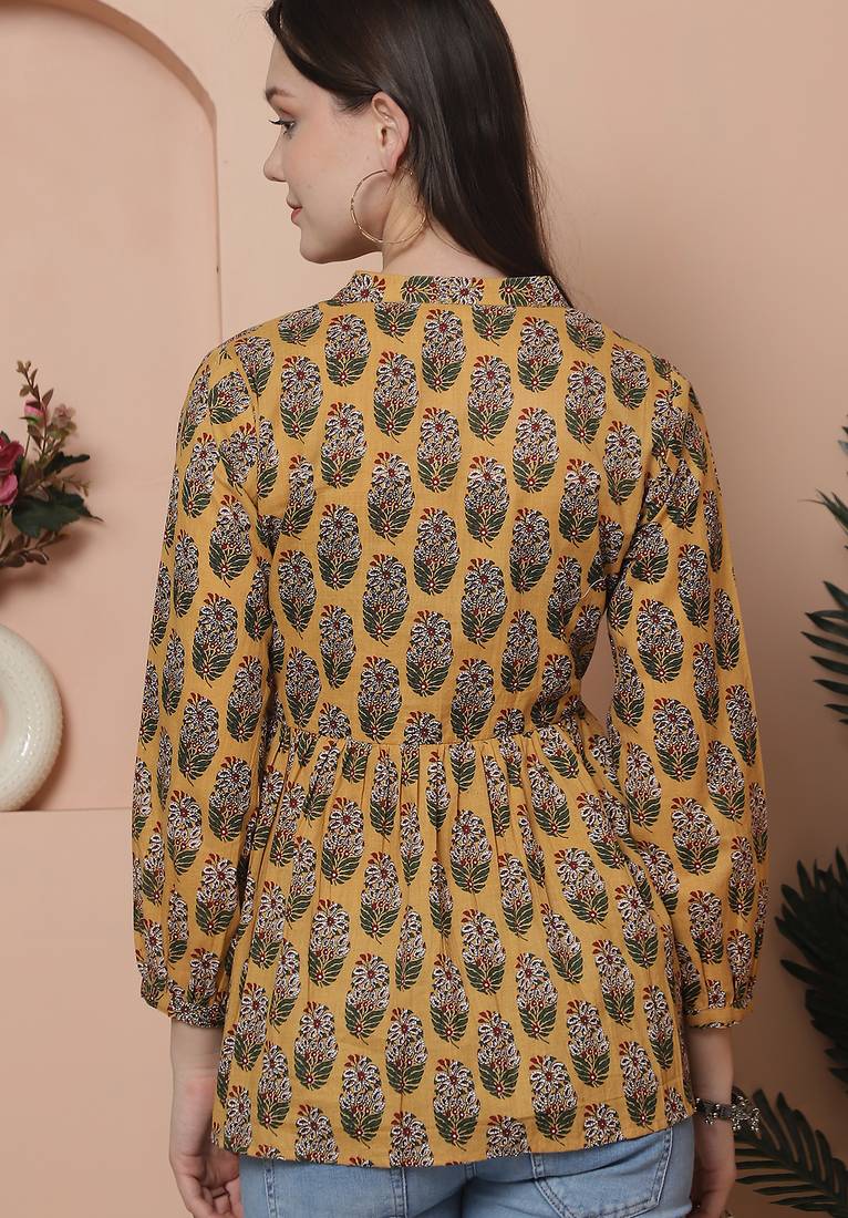 | Product Name | Mustard Women's Pure Cotton Jaipuri Printed Short Top | |