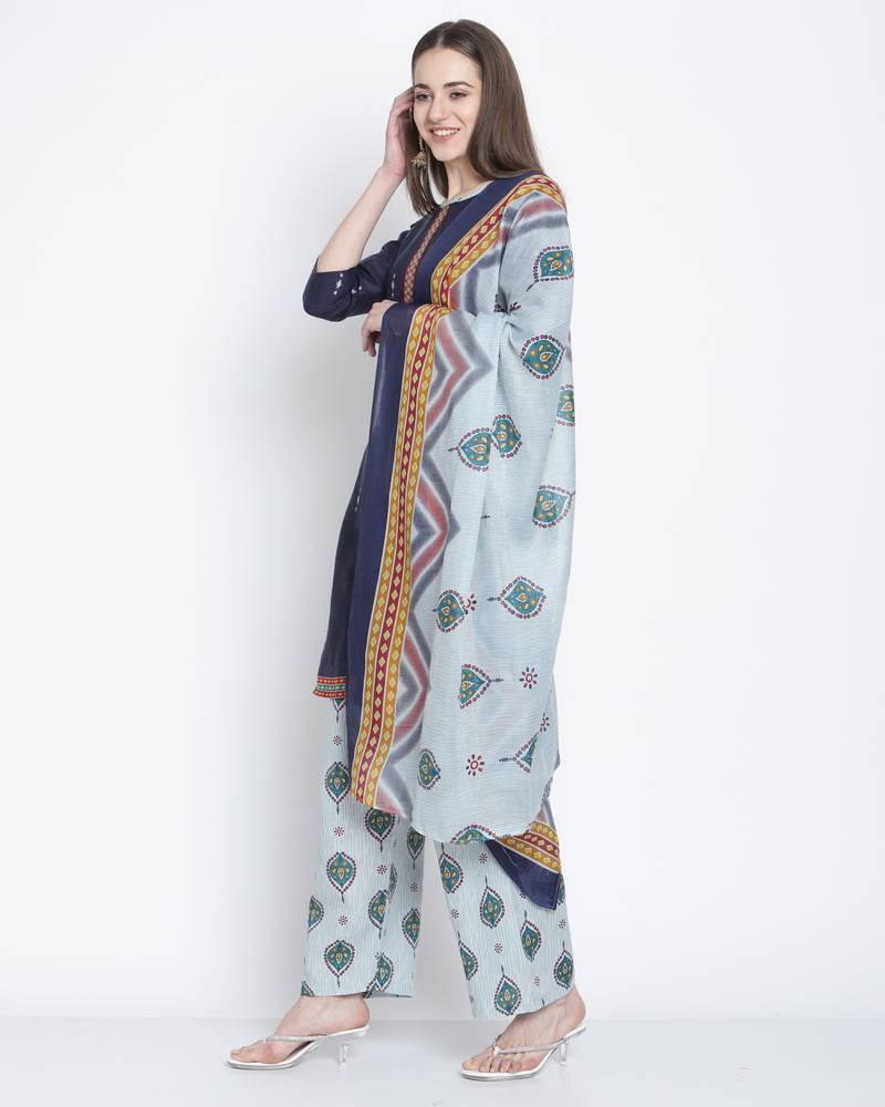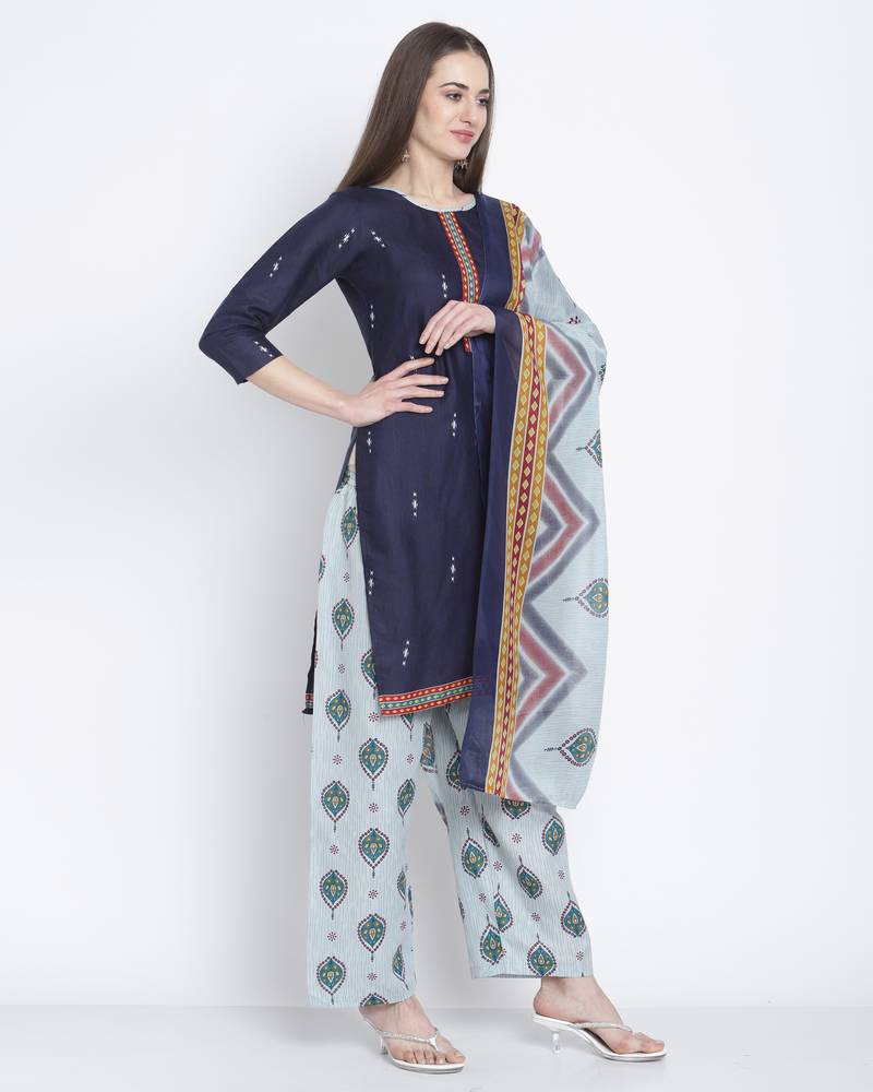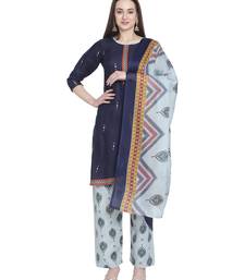 | Product Description | Beautiful Suit Look Pretty Like Never Before.Wearing This Navy Blue Color Suit Which Made From Rajnandini With Sky Blue Colored Cotton Blend Bottom And Sky Blue Colored Cotton Blend Dupatta.Suit Has Also Decorative Work Like Abstract.This Beautiful Suit Features A Classy Printed Work All Over,Which Makes It A Smart Pick For All Occasions. You Can Wear This Suit In Different Styles. You Can Wear It Occasionally Or Casually. |