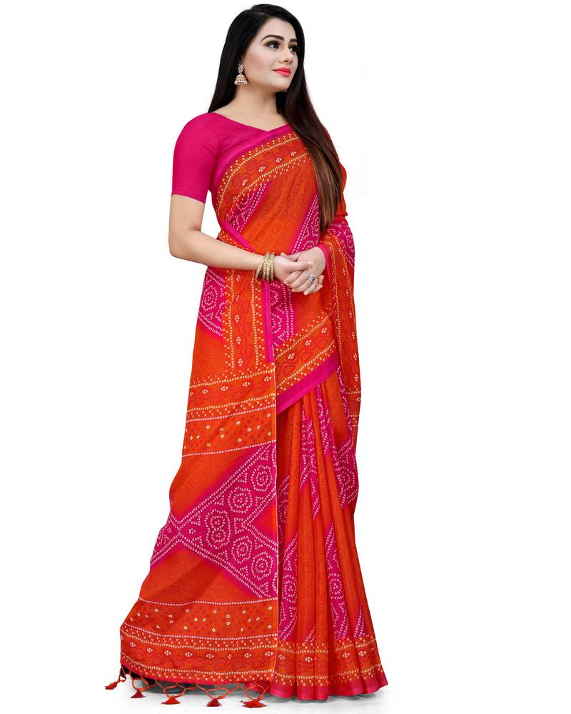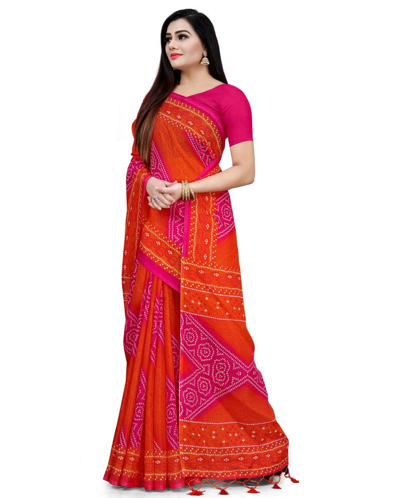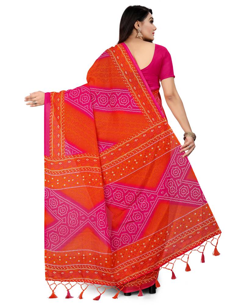| Product Description | Classy Saree Look Pretty Like Never Before.Wearing This Pink And Orange Color Saree Which Made From Kota Doria Cotton With Pink Color Kota Doria Cotton Blouse, Saree Has Also Decorative Work Like Bandhani Printed || Printed Border || Printed Pallu With Zalar And Tassel || Plain Blouse.This Beautiful Saree Features A Classy Printed Work All Over,Which Makes It A Smart Pick For All Occasions. You Can Wear This Saree In Different Styles. You Can Wear It Occasionally Or Casually. |