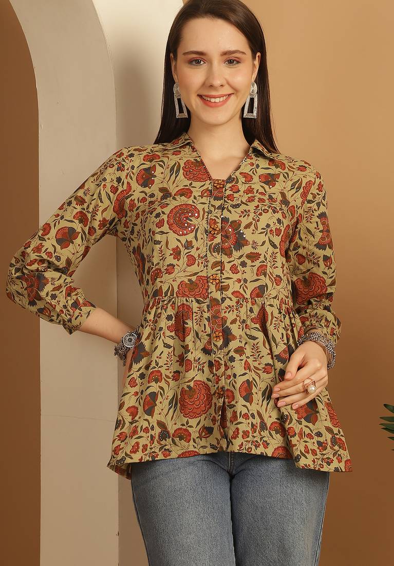 Product Description | This Beige Colour Top Is The Fun Attire Of The Moment. Get It On And Style It With A Handbag And Earings For The Perfect Day Look. Its Casual Wear And Cute The Essentials For Your Wardrobe |