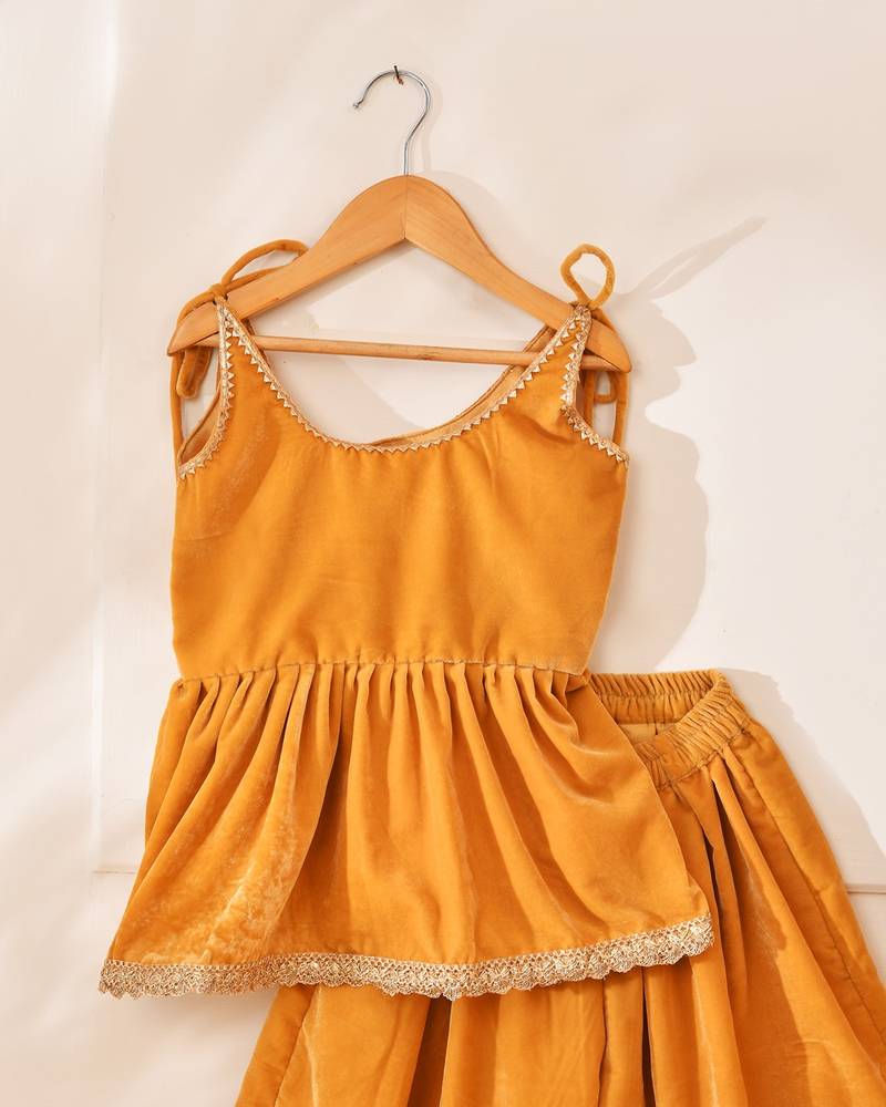 | Product Name | Yellow Velvet Solid Peplum Top With Palazzo | |