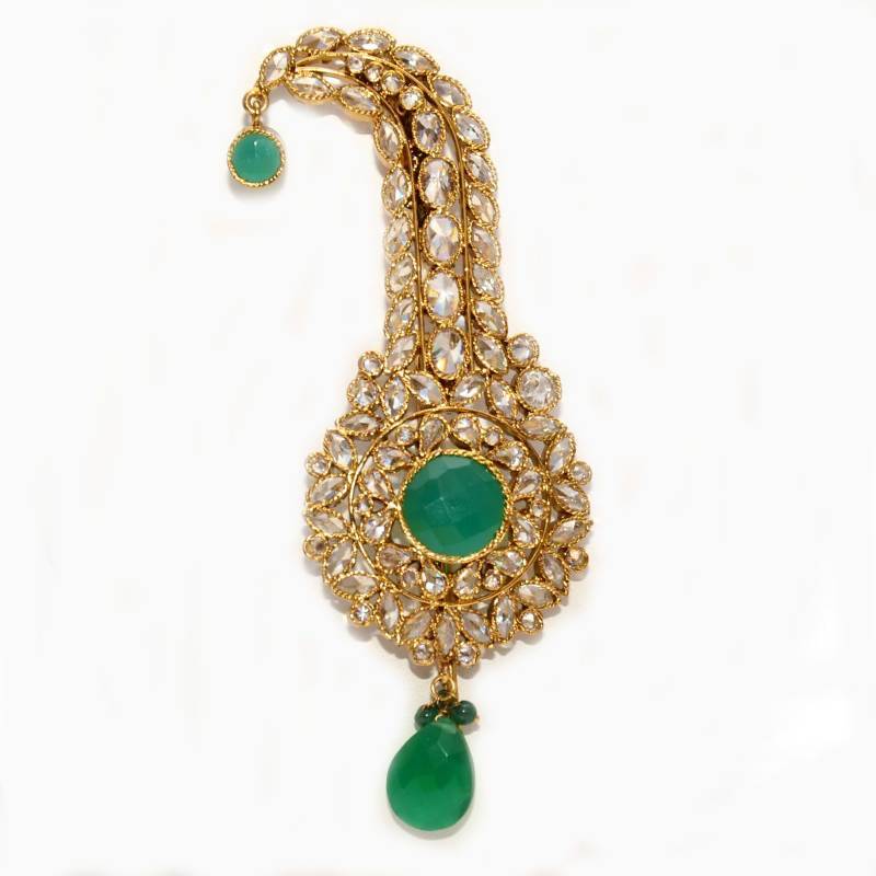 | Product Description | Anvi's Pagdi Brooch (Akbar Taj) Studded With Uncut Stones And Emerald At The Center |