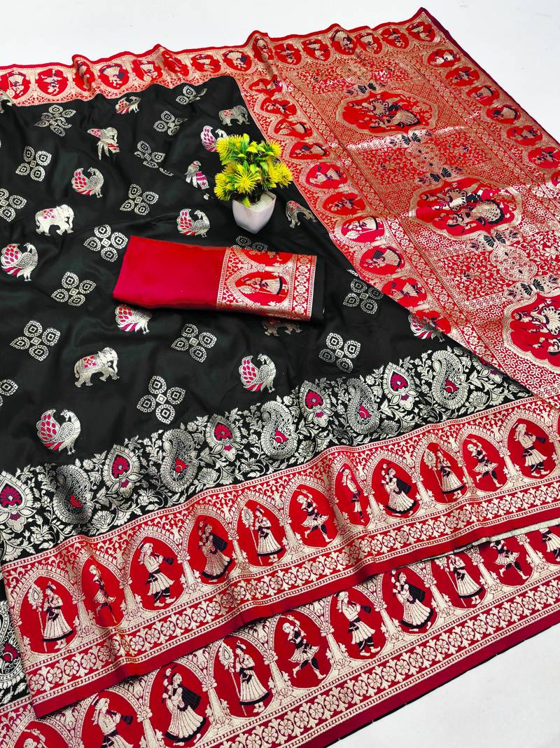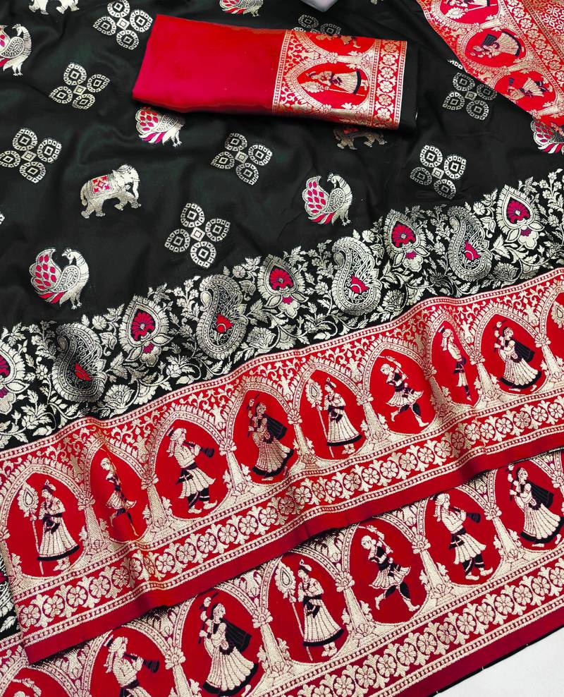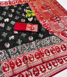 Black zari woven art silk baluchari saree with blouse