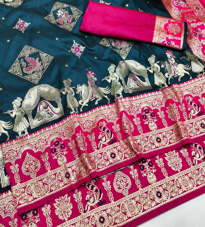 • | Saree | : | Color- Blue / Fabric- Silk |