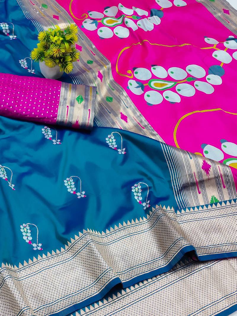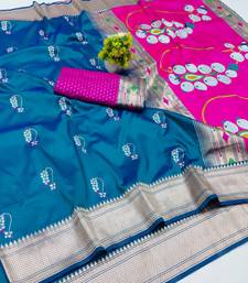 Blue zari woven art silk saree with blouse