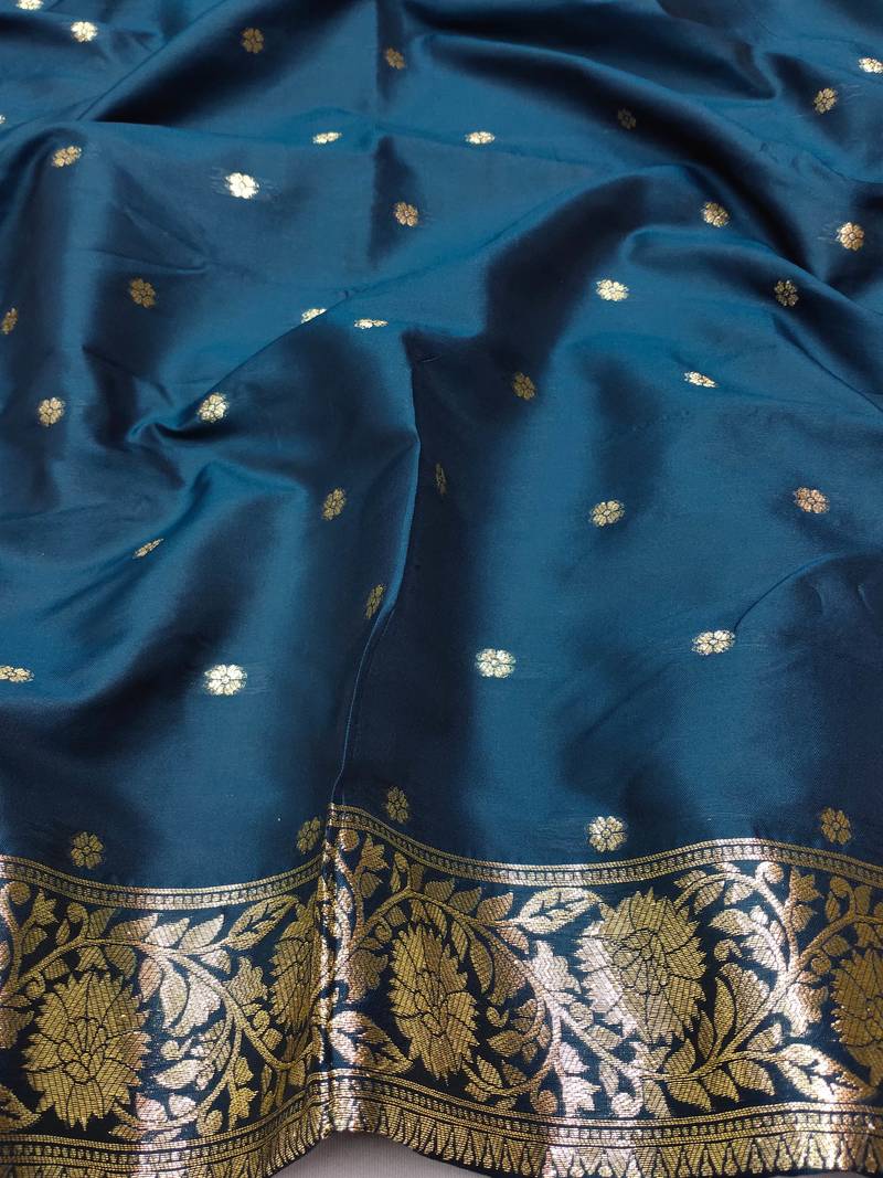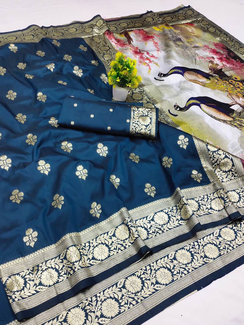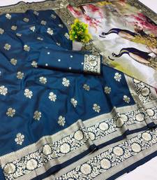 Blue zari woven art silk saree with blouse