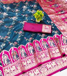 Dark blue zari woven art silk bridal style premium saree with blouse