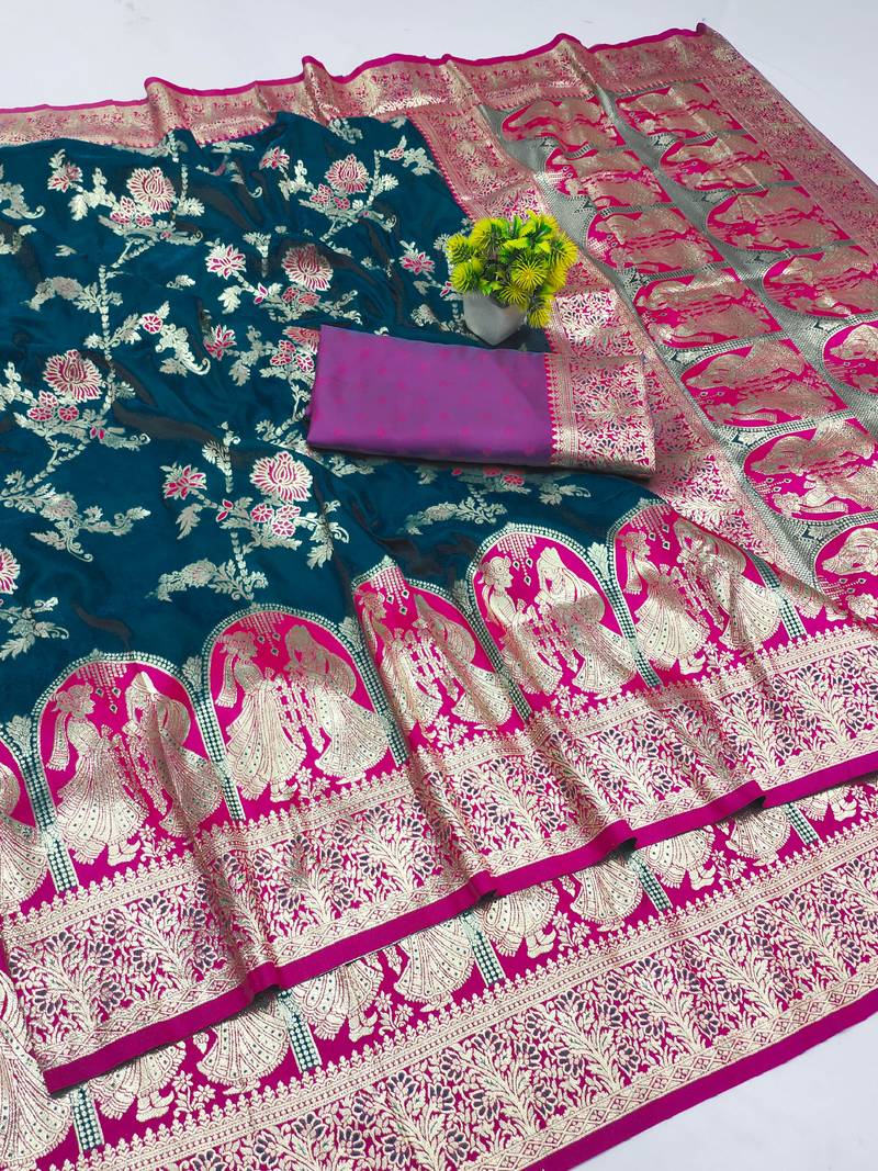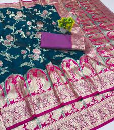 Dark blue zari woven art silk bridal style premium saree with blouse