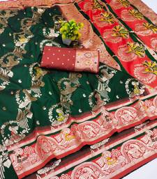 • | Saree | : | Color- Dark Green / Fabric- Silk |