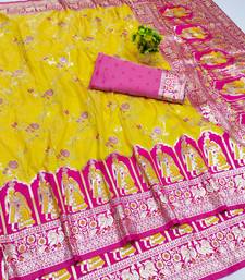 Gold zari woven art silk bridal style premium saree with blouse