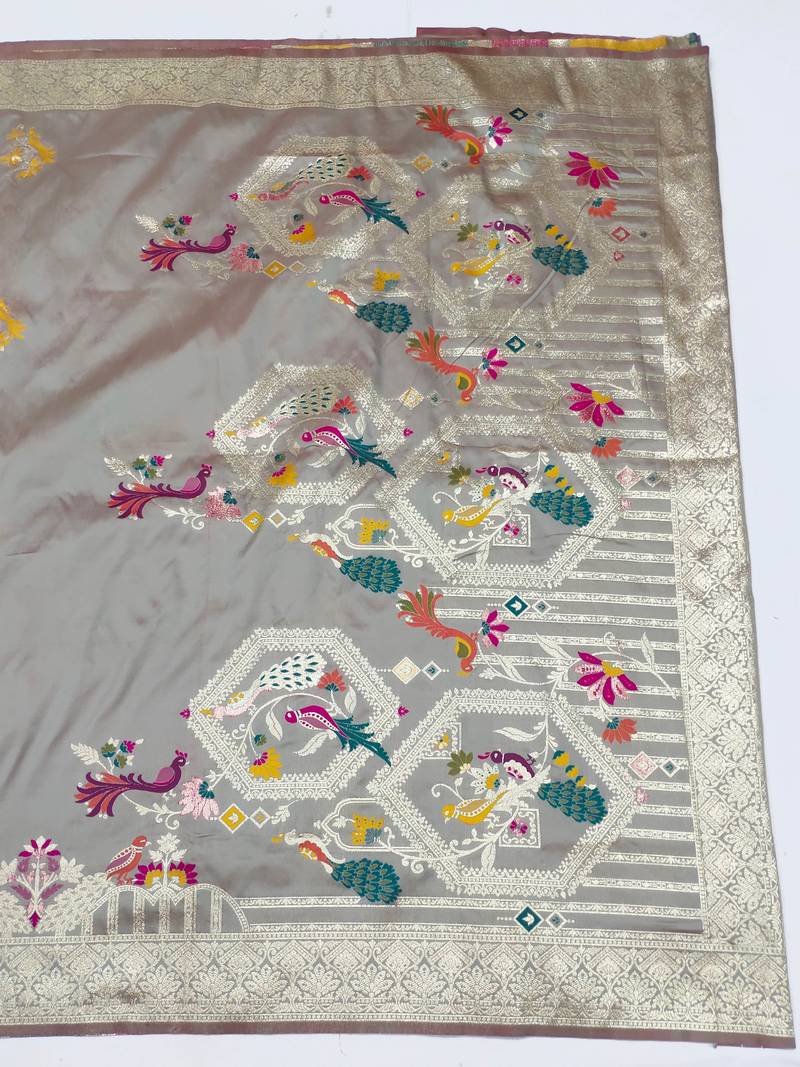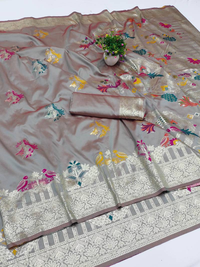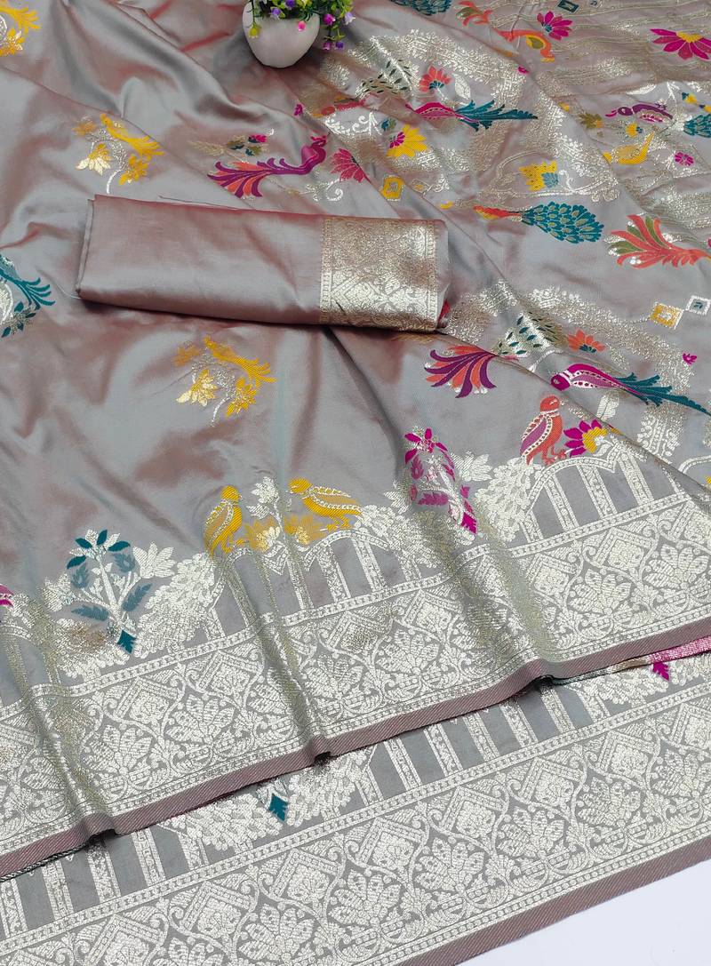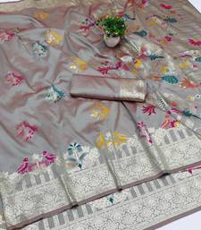Grey zari woven art silk saree with blouse