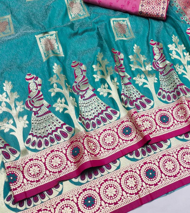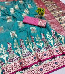Light blue zari woven art silk bridal style premium saree with blouse