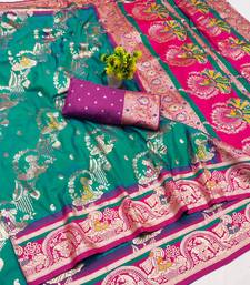 Light green zari woven art silk baluchari saree with blouse