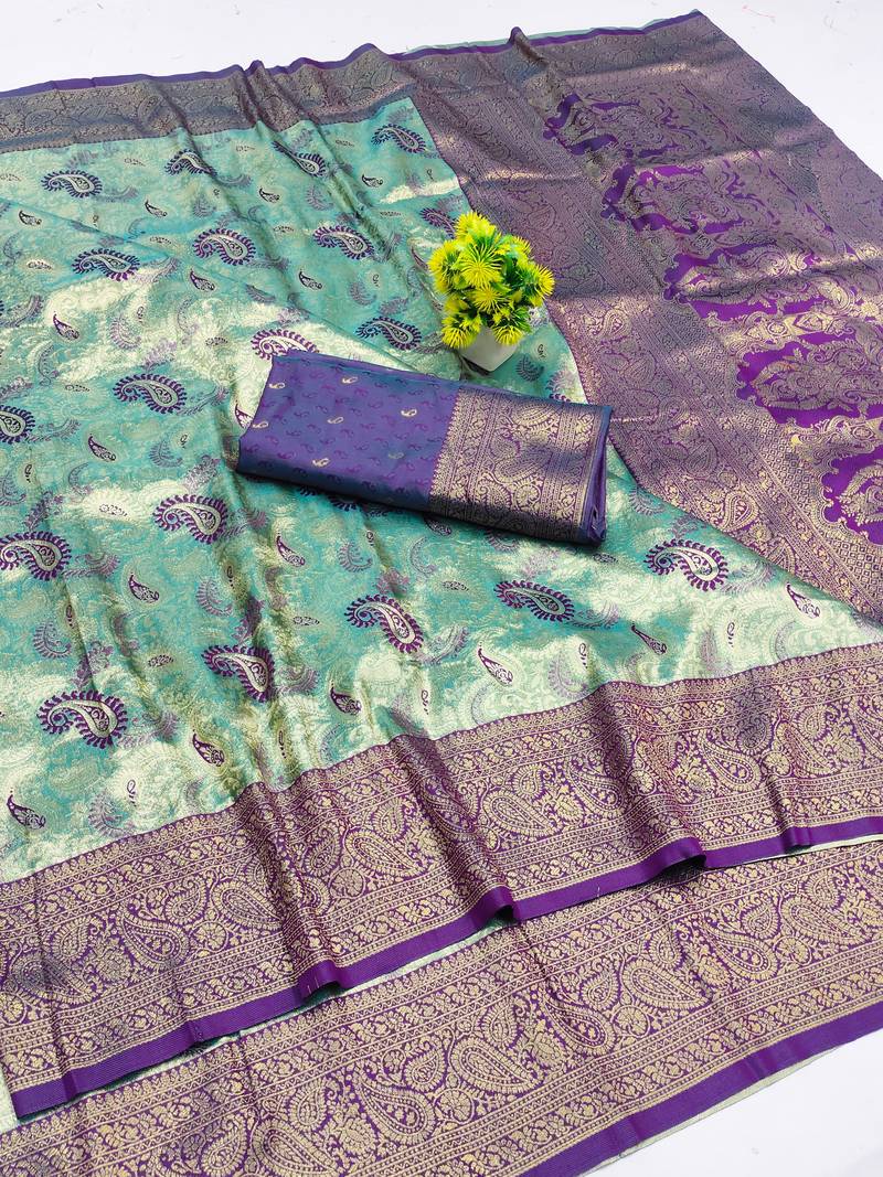 Product Name | Light Mint Green Zari Woven Kanjivaram Silk Saree With Blouse | |
