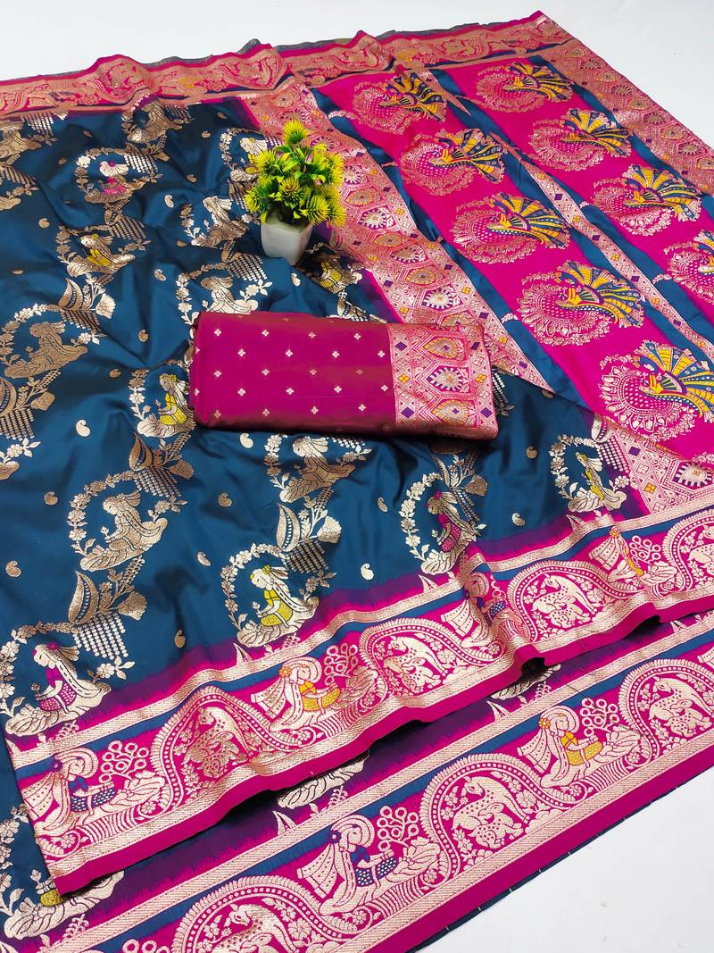 • | Saree | : | Color- Blue / Fabric- Silk |