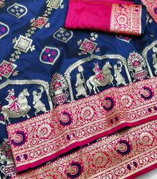 Navy blue zari woven art silk baluchari saree with blouse