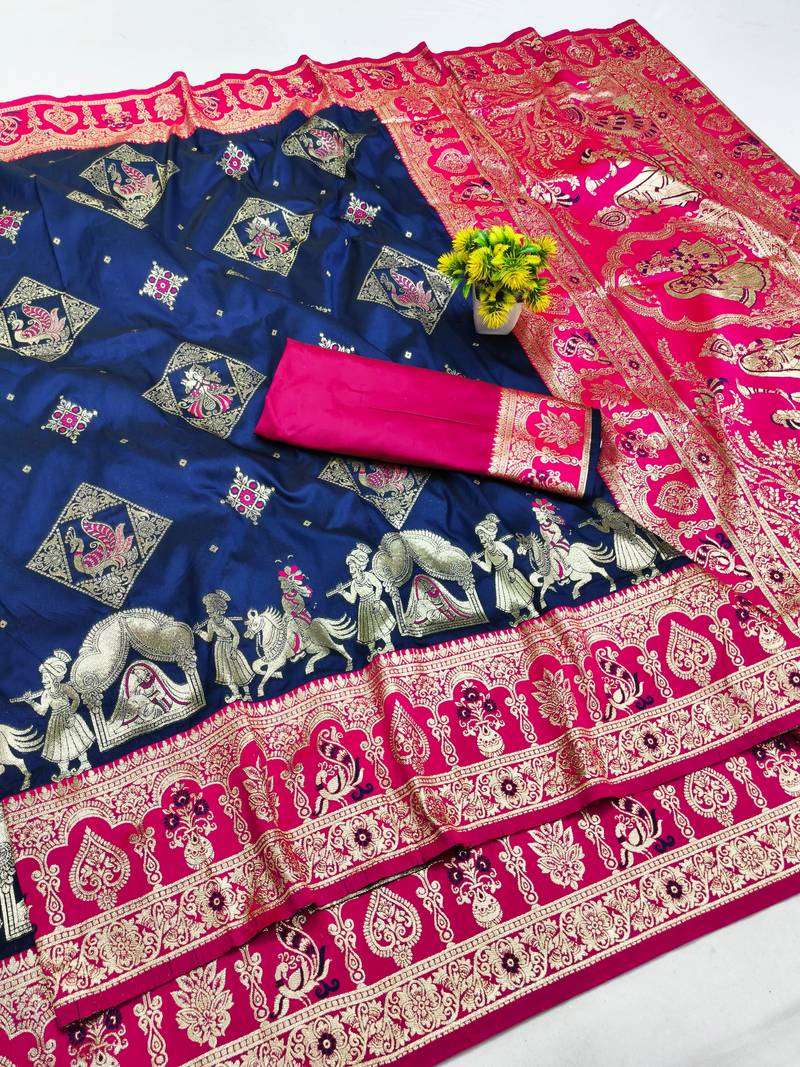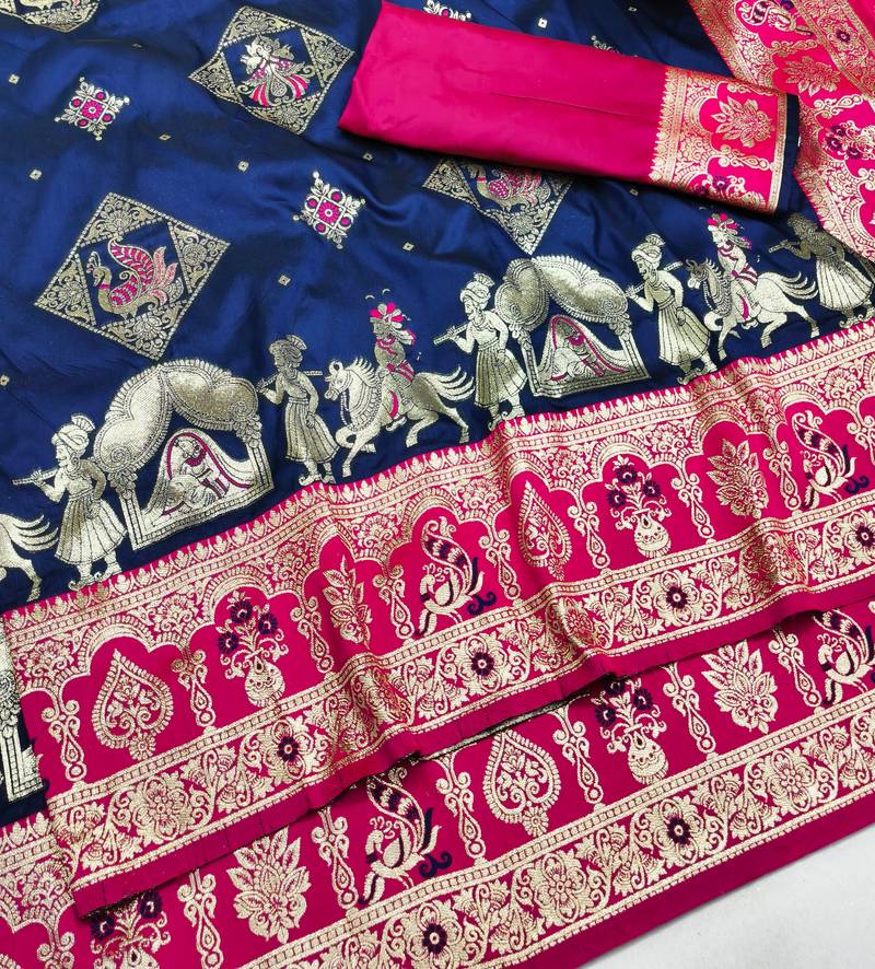 • | Saree | : | Color- Navy Blue / Fabric- Silk |