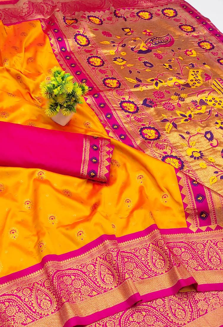 Product Name | Orange Copper Zari Woven Art Silk Saree With Blouse | |