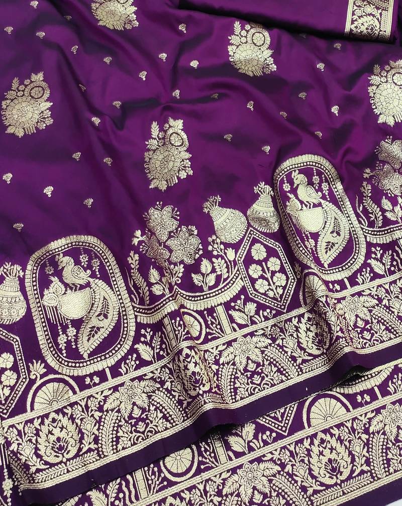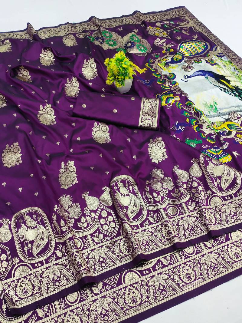Purple zari woven art silk saree with blouse