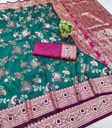 Rama green silk blend paithani saree with woven banarasi