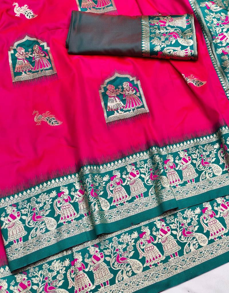 • | Saree | : | Color- Rani Pink / Fabric- Silk |