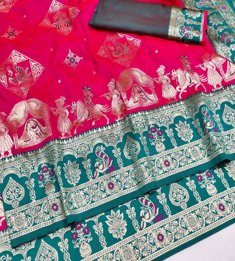 • | Saree | : | Color- Rani Pink / Fabric- Silk |