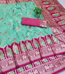 Turquoise zari woven art silk bridal style premium saree with blouse
