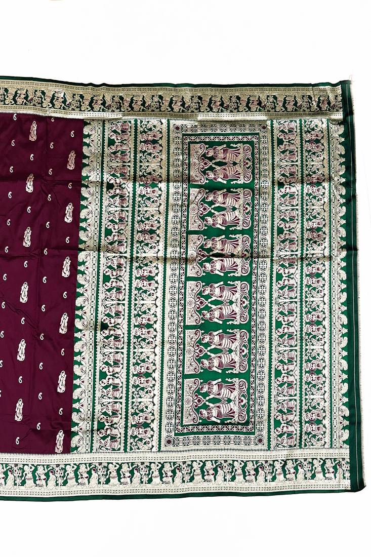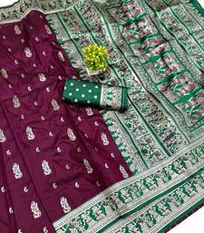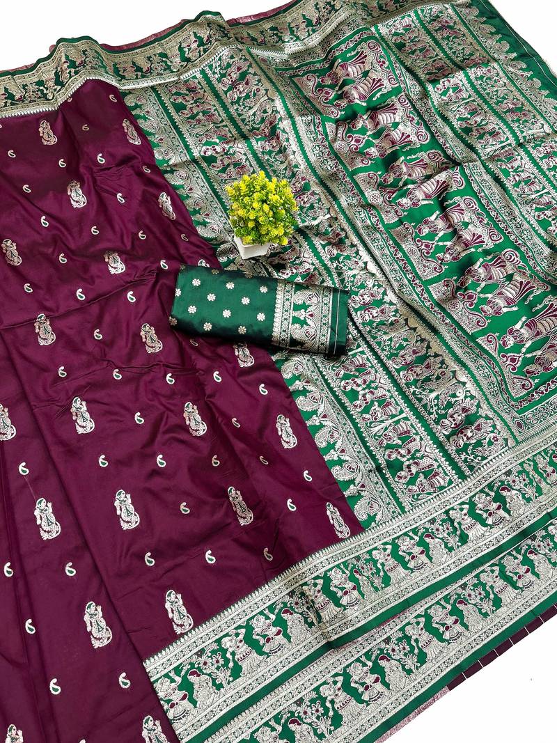Wine zari woven art silk baluchari saree with blouse