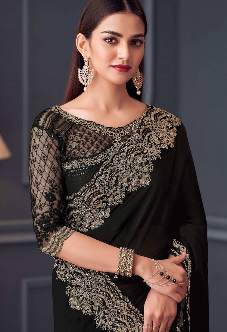 | Product Name | Black Chiffon Embroidered Wedding Sarees | |