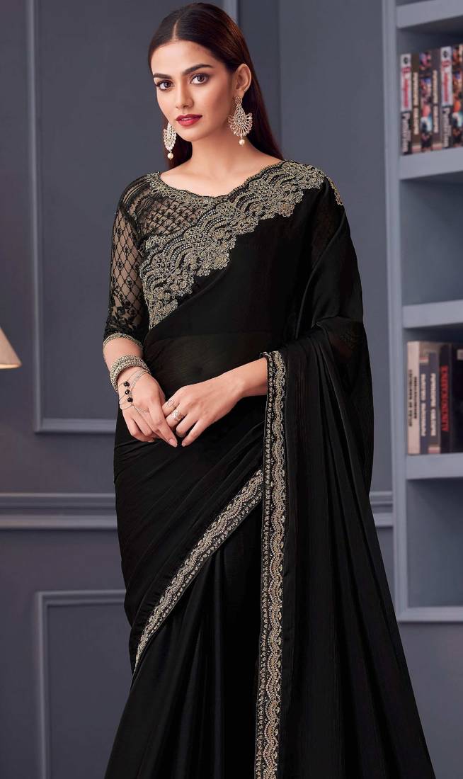 | Product Description | Black Chiffon Embroidered Wedding Sarees.This Saree Makes You Awesome And Gives You Most Stylish & Trendy Look.This Saree Is Perfect For Party Wear,Office Wear,Weeding Wear And Festive Wear And Also Makes You Star Of Party |