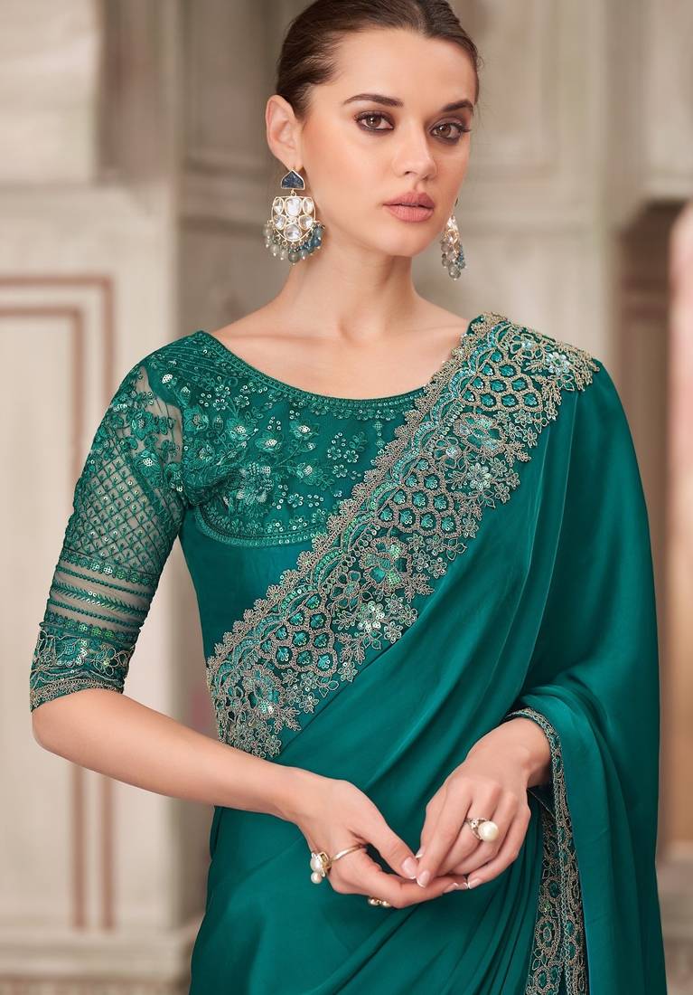 | Product Description | Green Silk Embroidered Wedding Sarees.This Saree Makes You Awesome And Gives You Most Stylish & Trendy Look.This Saree Is Perfect For Party Wear,Office Wear,Weeding Wear And Festive Wear And Also Makes You Star Of Party |