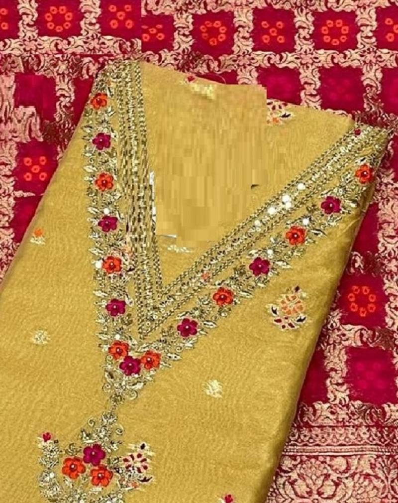 Mustard chanderi silk fashion silk-salwar-kameez unstitched