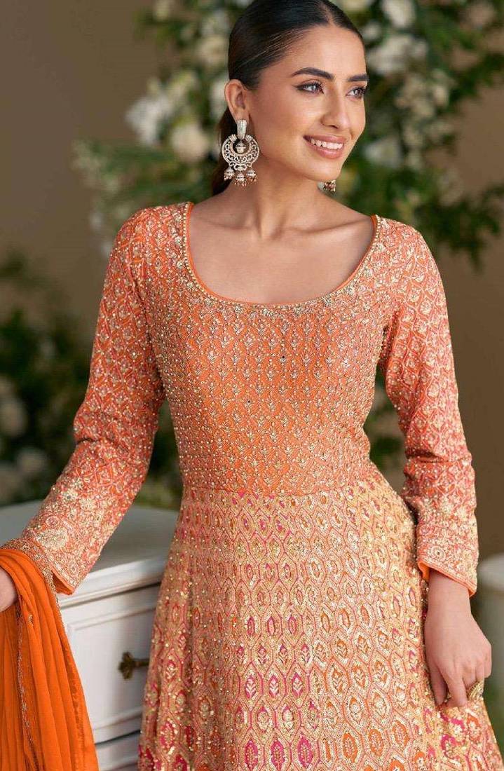 | Product Name | Orange Embroidered Georgette Anarkali Salwar Kameez | |