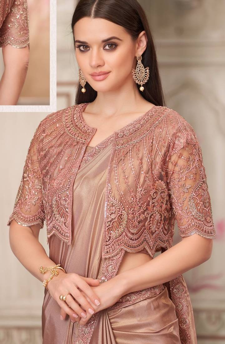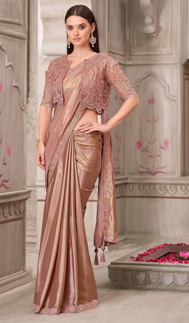 | Product Name | Peach Silk Blend Embroidered Bollywood Sarees | |